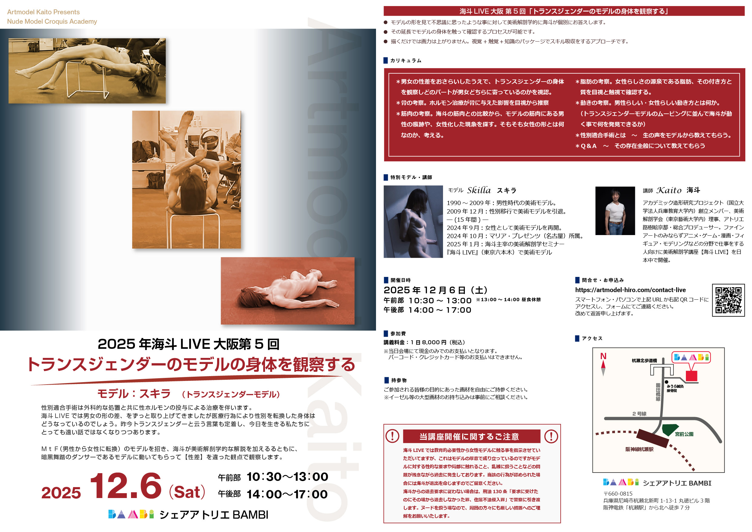 男女のモデルを同時に観察できるうえに、解剖学の解説までつくという豪華なセミナー!